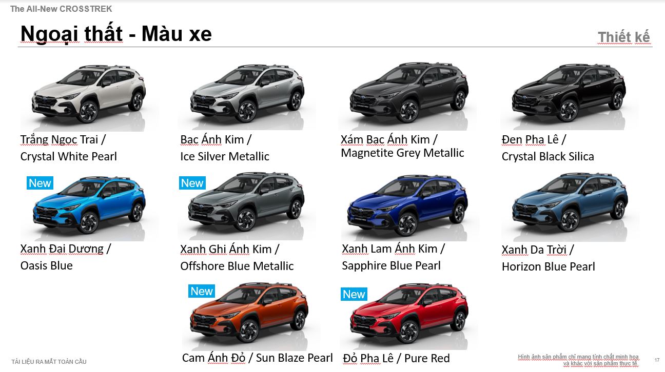 Ngoại thất Subaru Crosstrek 2025 có 10 màu tuỳ chọn bao gồm: