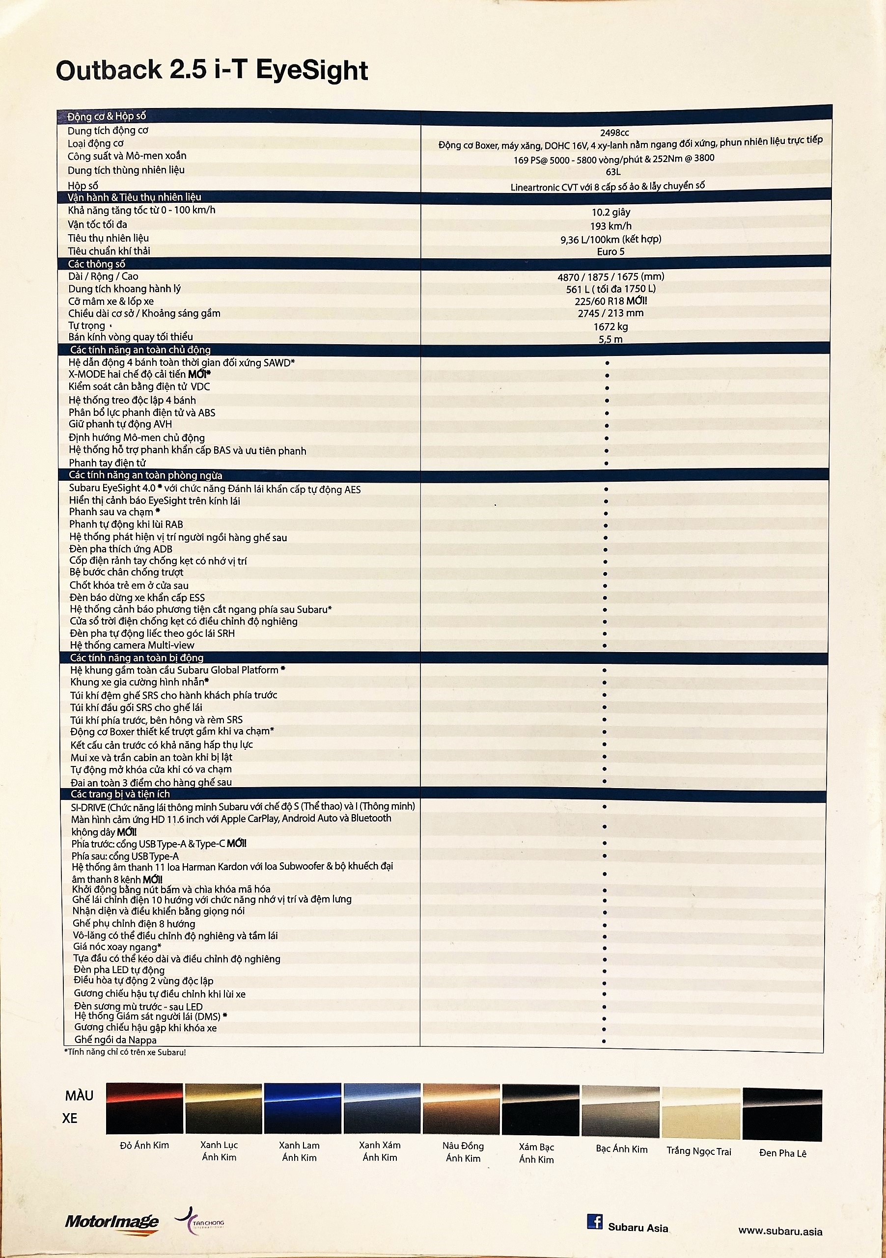 Thông số kỹ thuật xe Subaru Outback 2025: Kích thước